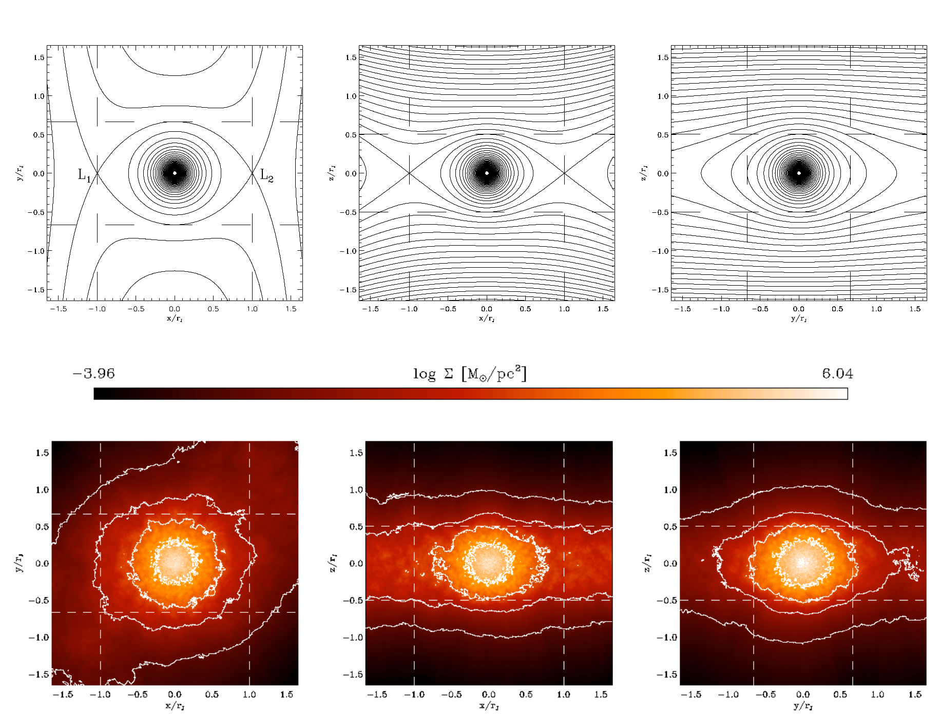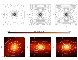 ![]() Figure: Effective potential isolines and comparison with a simulation. From: A. Ernst, A. Just, P. Berczik, M. Petrov, Calibration of radii and masses of open clusters with a simulation, 2010, A&A, 524, A62 |